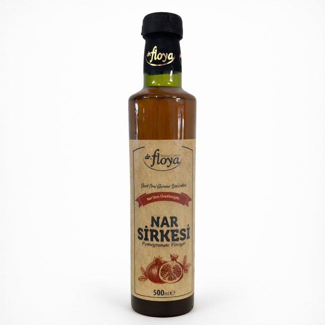 El vinagre de granada Dr. Floya se obtiene mediante el proceso de fermentación natural de las granadas. Su aroma afrutado y su acidez equilibrada lo convierten en un ingrediente especial que puede utilizarse tanto en la cocina como en el consumo diario.