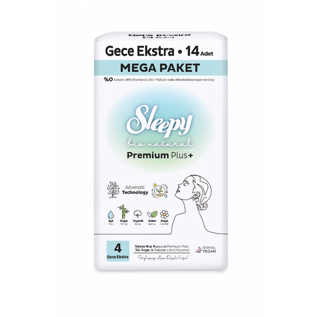 Las compresas Sleepy Bio Natural Premium Plus+ (Talla 4) Mega Noche Extra están diseñadas para ofrecer comodidad y seguridad durante toda la noche. Su fórmula natural y respirable mantiene la piel seca y protegida.