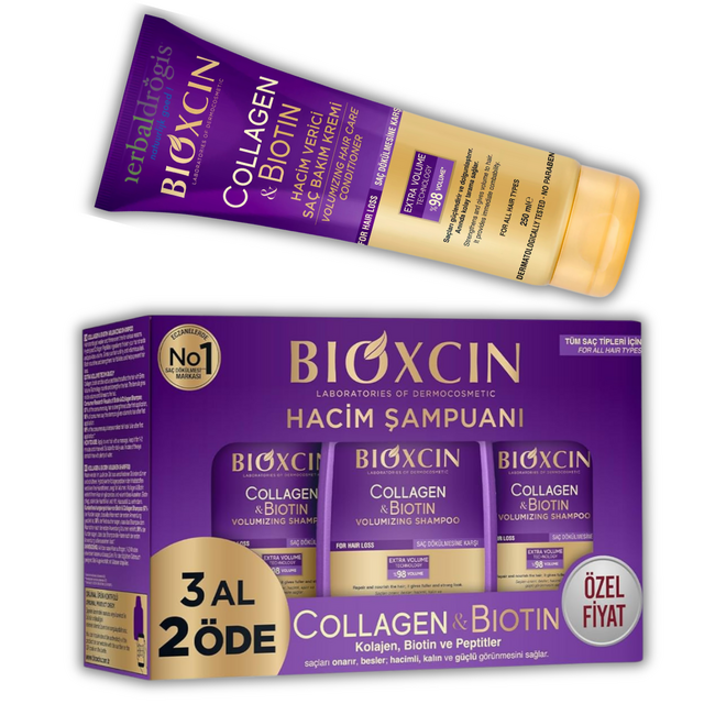 Le set Bioxcin Biotin & Collagen Shampooing 3x300 ml et Crème Capillaire 250 ml soutient des cheveux plus forts, plus volumineux et soignés. Sa formule enrichie en biotine et collagène renforce les fibres capillaires, améliore le volume et optimise l’efficacité de votre routine capillaire quotidienne.