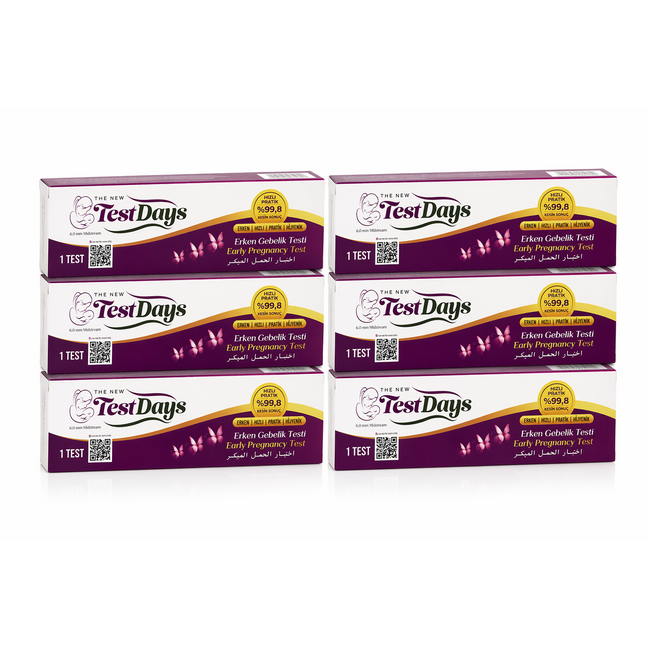 De TestDays 6-pack midstream zwangerschapstest is ontwikkeld voor gebruikers die hun cyclus nauwkeurig willen volgen en zwangerschap zo vroeg mogelijk willen detecteren. Met een gevoeligheid van 10 mIU/ml kan deze test lage concentraties van het HCG-hormoon in de urine detecteren, zelfs voordat de menstruatie uitblijft.