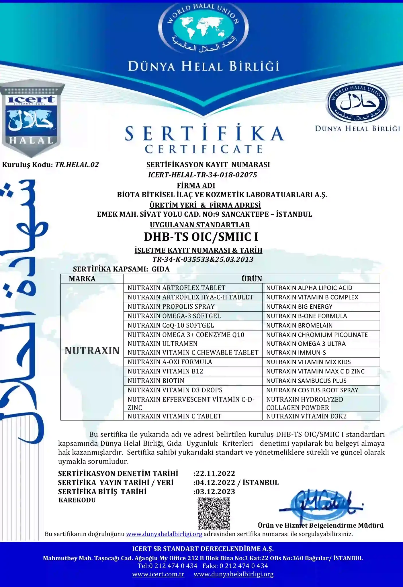 Nutraxin Helal Sertifikasını Görmek için Tıklayınız