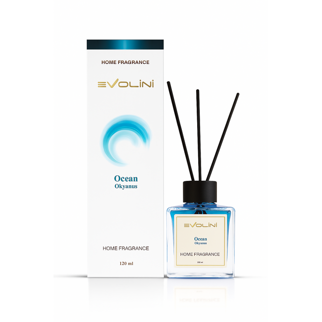 Evolini Bambu Çubuklu Oda Kokusu – Okyanus, denizin ferahlatıcı atmosferini evinizin her köşesine taşır. Doğal bambu çubukları sayesinde kokuyu yavaşça yayarak uzun süre etkisini korur ve ortamda dengeli bir koku dağılımı sağlar.