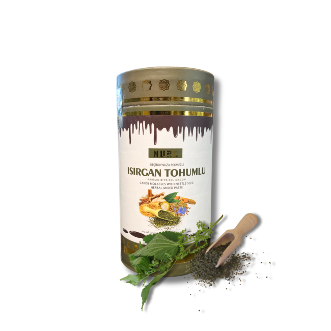 Nurs Isırgan Tohumlu Karışık Bitkisel Macun, doğadan gelen özel bir karışımın harmanlanması ile oluşturulmuş, sağlıklı yaşamı destekleyici bir üründür. Hücre yenileme, akciğer ve karaciğer besleme, alyuvar ve demir eksikliğini giderme gibi birçok faydasıyla ön plana çıkan bu macun, doğal ve etkili bir destek.