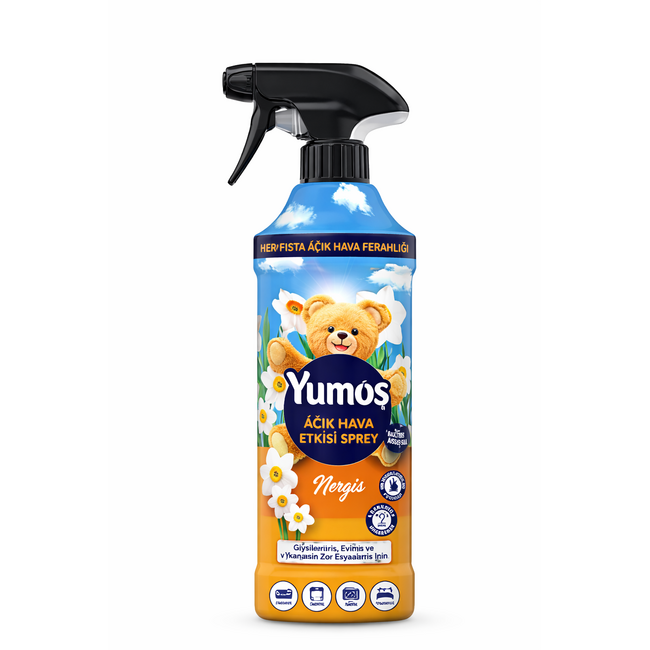 Yumoş Açık Hava Etkisi Sprey Nergis 430 ml, evinizdeki tekstil ürünlerine hızlı ve pratik şekilde ferahlık kazandırmak için geliştirilmiş özel bir ev ve tekstil spreyidir. Nergis çiçeğinin zarif ve temiz kokusu ile koltuk, perde, halı ve diğer yıkanması zor yüzeylerde uzun süre kalıcı tazelik sağlar.